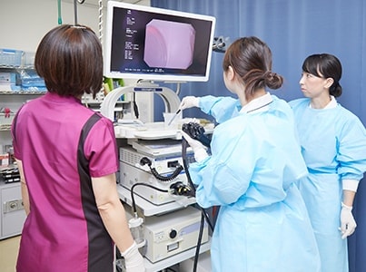 予防医学の意識の高まりから、健診で内視鏡検査を受けられる方は多くなっています。少しでも緊張や苦痛がなく内視鏡検査を受けていただけるよう、写真を用いた「検査説明」を準備するなど、スタッフで工夫をしています。定期的に検査を受けてくださる方も多いため、前回の検査状況を必ず把握し、できる限りリラックスした状態で受けていただくことは、その後の定期的な受診、延いては疾病予防・健康維持に繋がると考えています。「この病院で検査を受けて本当に良かった。」と思っていただけるよう、医師を交えた勉強会や学会にも積極的に参加し、知識・技術の向上にも努力しています。