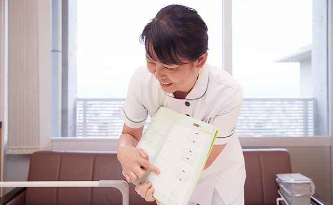 そのため、患者様は、仕事や子育てなど様々な役割を担いながら生活と治療を両立されています。患者様とのコミュニケーションの中で、不安な思いを受け止め、生活背景などを理解しつつ、治療を続けながらも、自分らしく安心して暮らせるようサポートさせて頂いています。